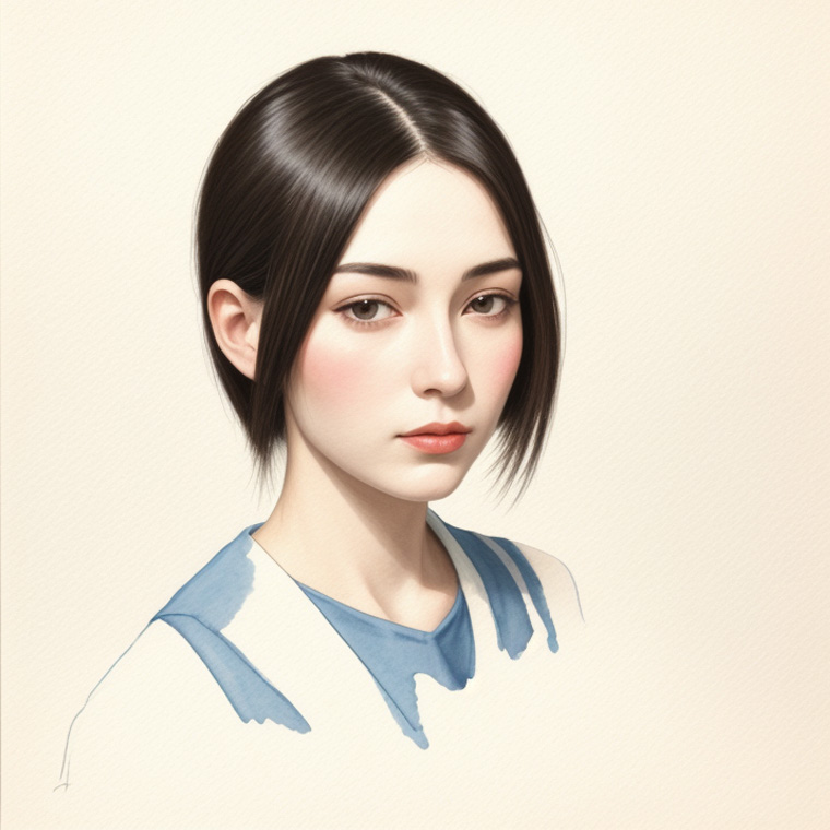 提示词:一个女孩,线条风格,极简主义,肖像,Trina Robbins 风格,精美细节,