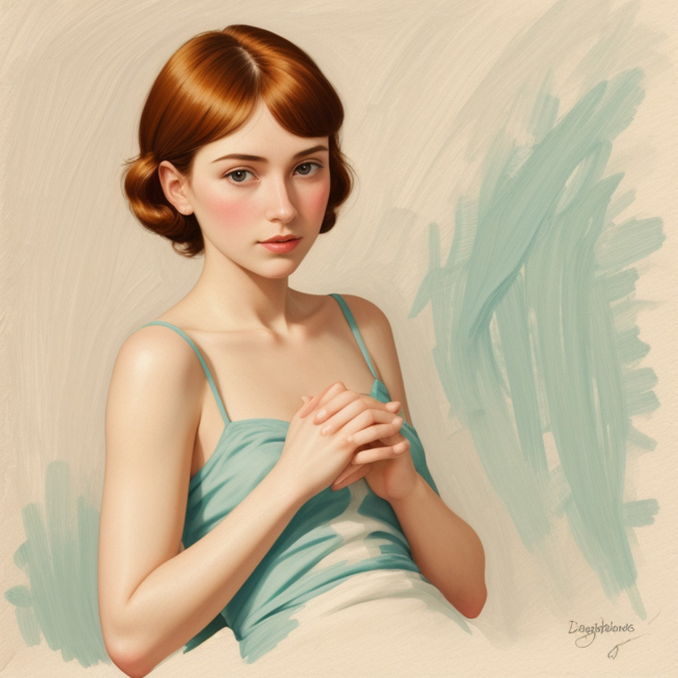 提示词:一个女人,油画,水粉画,Dorothy Johnstone 的风格,肖像,锐利的焦点,富有色彩的,精美细节