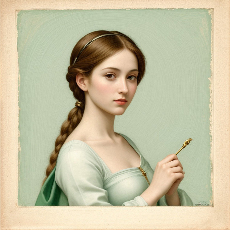 提示词:一个女人,油画,Raphael 的风格,肖像,中世纪服饰,锐利的焦点,富有色彩的,精美细节,