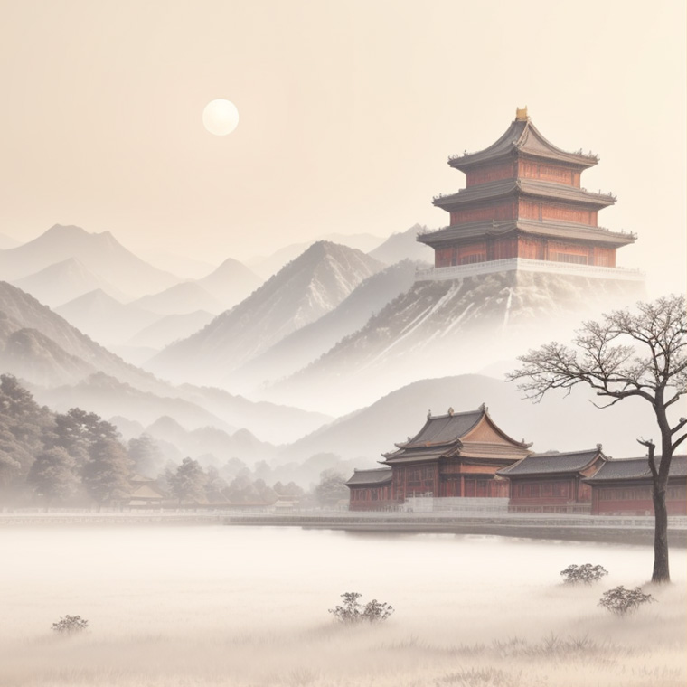 提示词:中国画效果,月亮,紫禁城建筑,新鲜风格背景,中国风格,山水画,吸引人,超高清