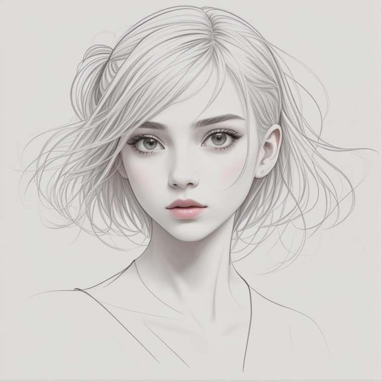 提示词:一个女孩,线条风格,极简主义,肖像,Alex Toth 风格,精美细节