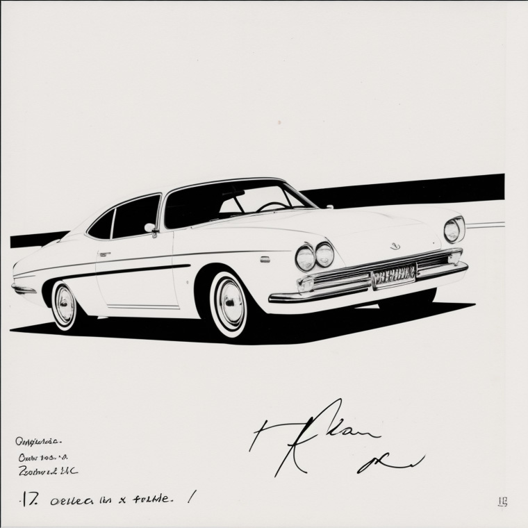提示词:一辆汽车,Alex Toth 风格,黑白,精美细节,