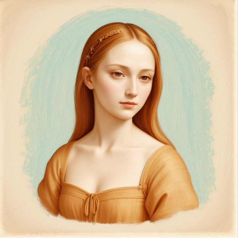 提示词:一个女人,油画,Sandro Botticelli 的风格,肖像,15世纪服饰,锐利的焦点,富有色彩的,精美细节,