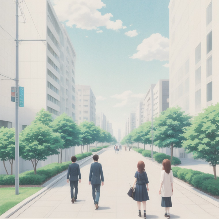 提示词:现代城市,P.A. Works 风格,日本漫画,卡通,2D,富有色彩的,精美细节,