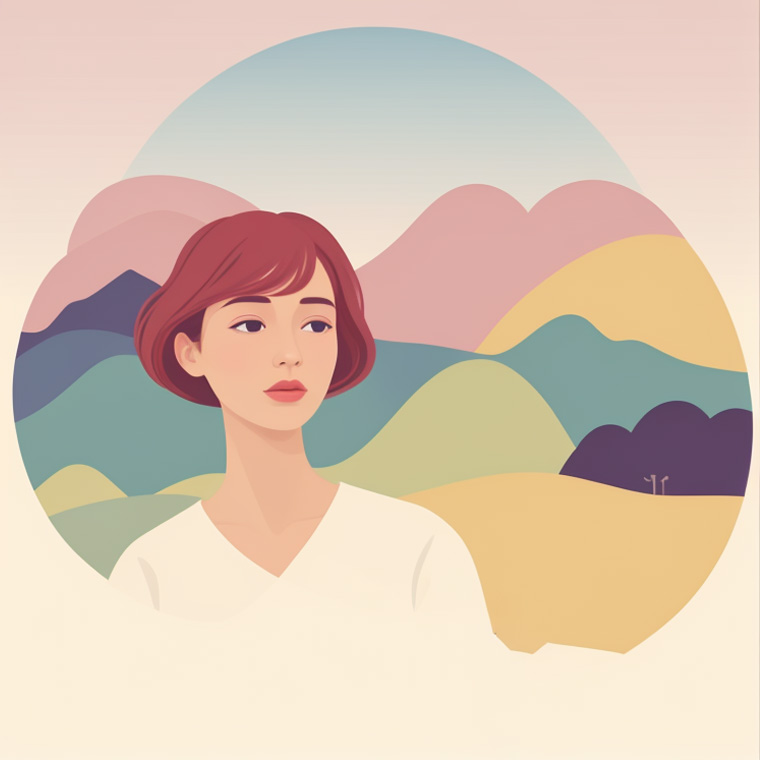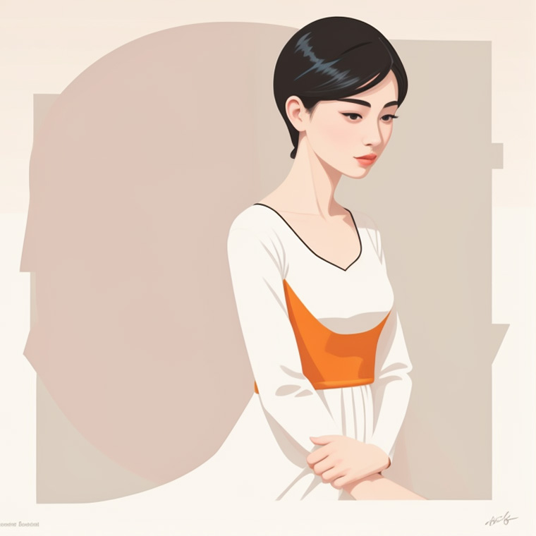 提示词:一个女孩,扁平插画,矢量插画,渐变色彩,Will Barnet 的风格,简单背景,富有色彩的,精美细节