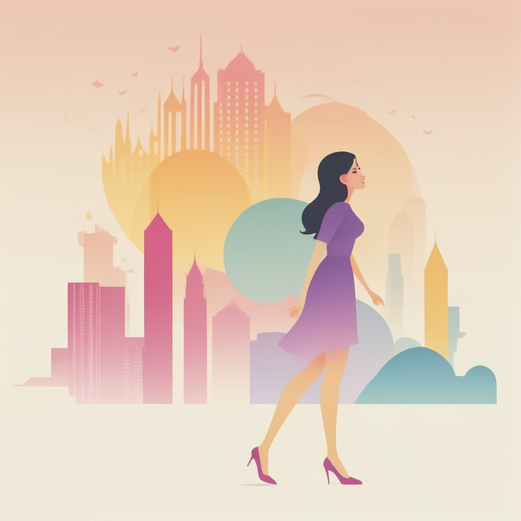提示词:一个女孩,扁平插画,矢量插画,渐变色彩,Jane Newland 的风格,城市背景,富有色彩的,精美细节