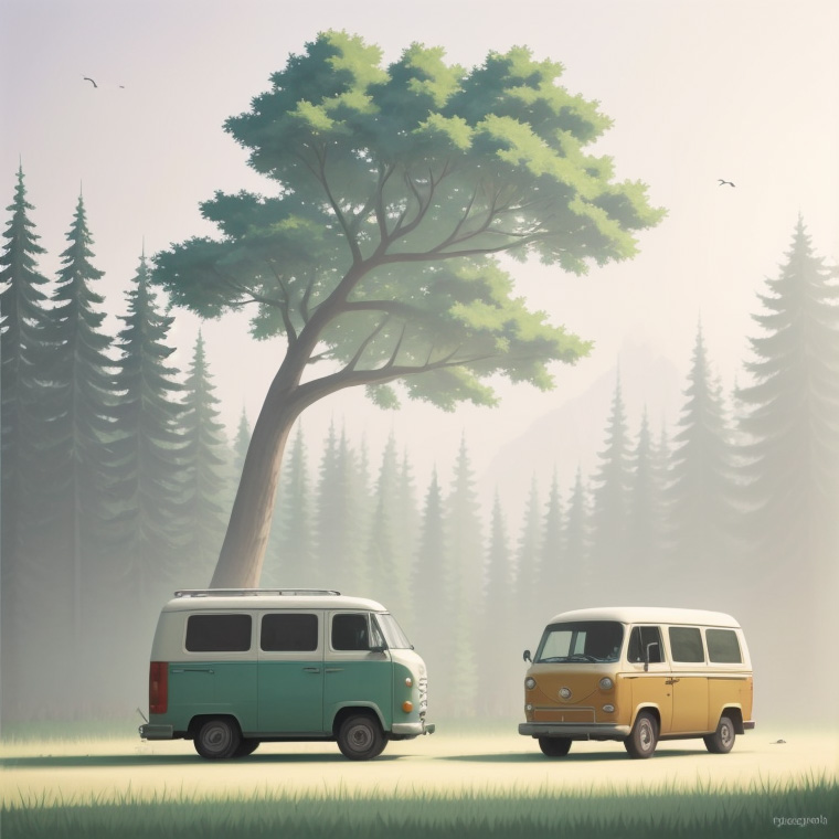 提示词:汽车驶向森林,Goro Fujita 插画风格,鲜明的色彩,锐利的焦点,精美细节,艺术站,