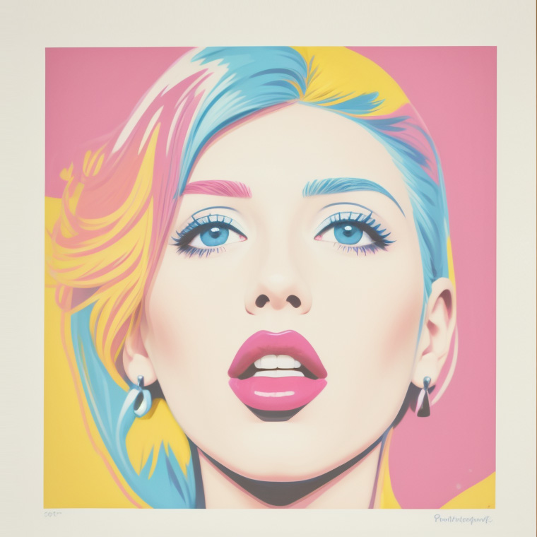 提示词:一个女孩的头像,波普艺术风格,扁平插画,2D,Eduardo Paolozzi 风格,艳丽色彩,