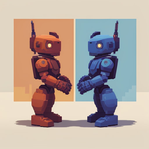 提示词:机器人,像素艺术风格,扁平插画,2D,城市废墟背景,鲜明的色彩,锐利的焦点,精美细节,艺术站,