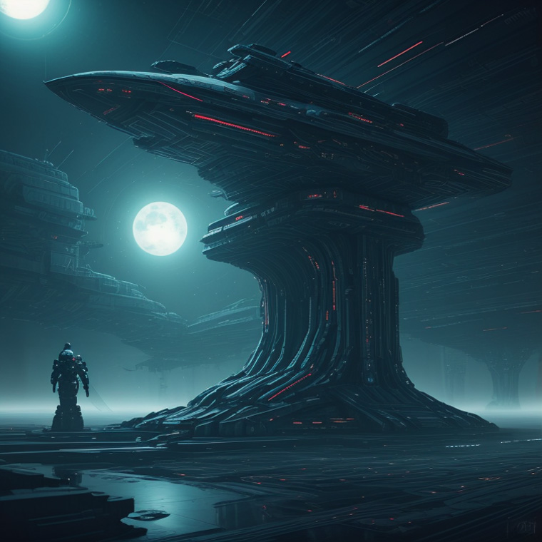 提示词:飞船基地,Atelier Olschinsky 风格,科幻,未来科技,插图,美丽的细节