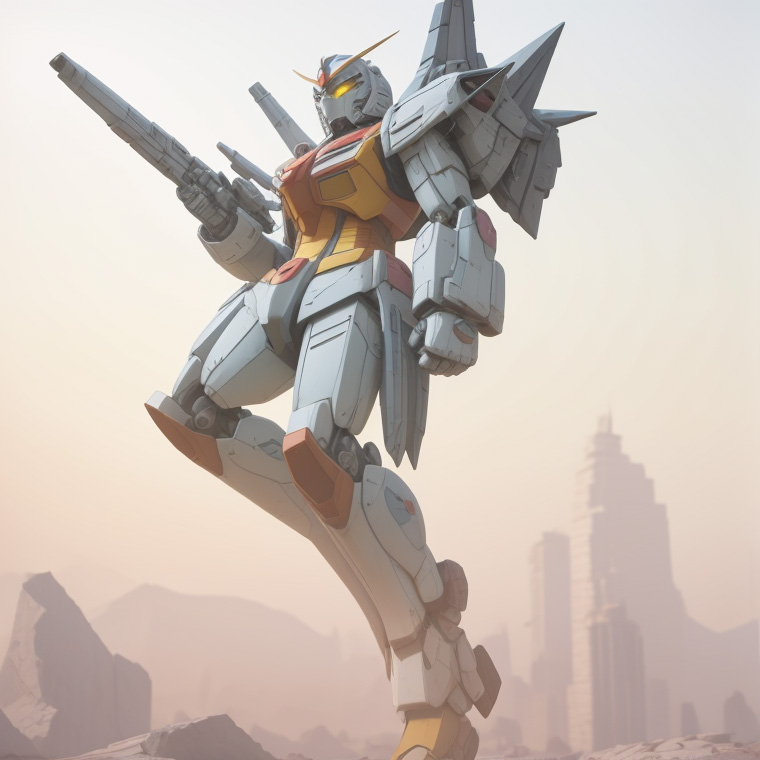 提示词:机动战士Gundam的3D特写镜头,城市破虚背景,色彩艳丽