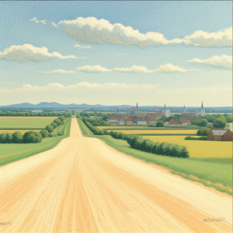 提示词:现代都市,油画,Pablo Ruiz Picasso 风格,田园乡村背景,富有色彩的,精美细节,
